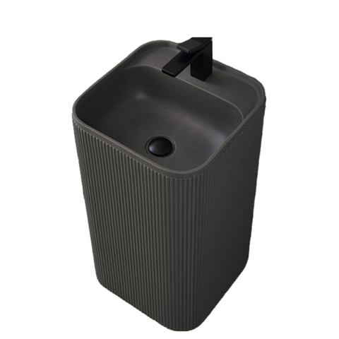 Hiện đại dọc màu be sọc freestanding Đá Nhân Tạo cột lưu vực bệ Sinks cho khách sạn biệt thự căn hộ washrooms
